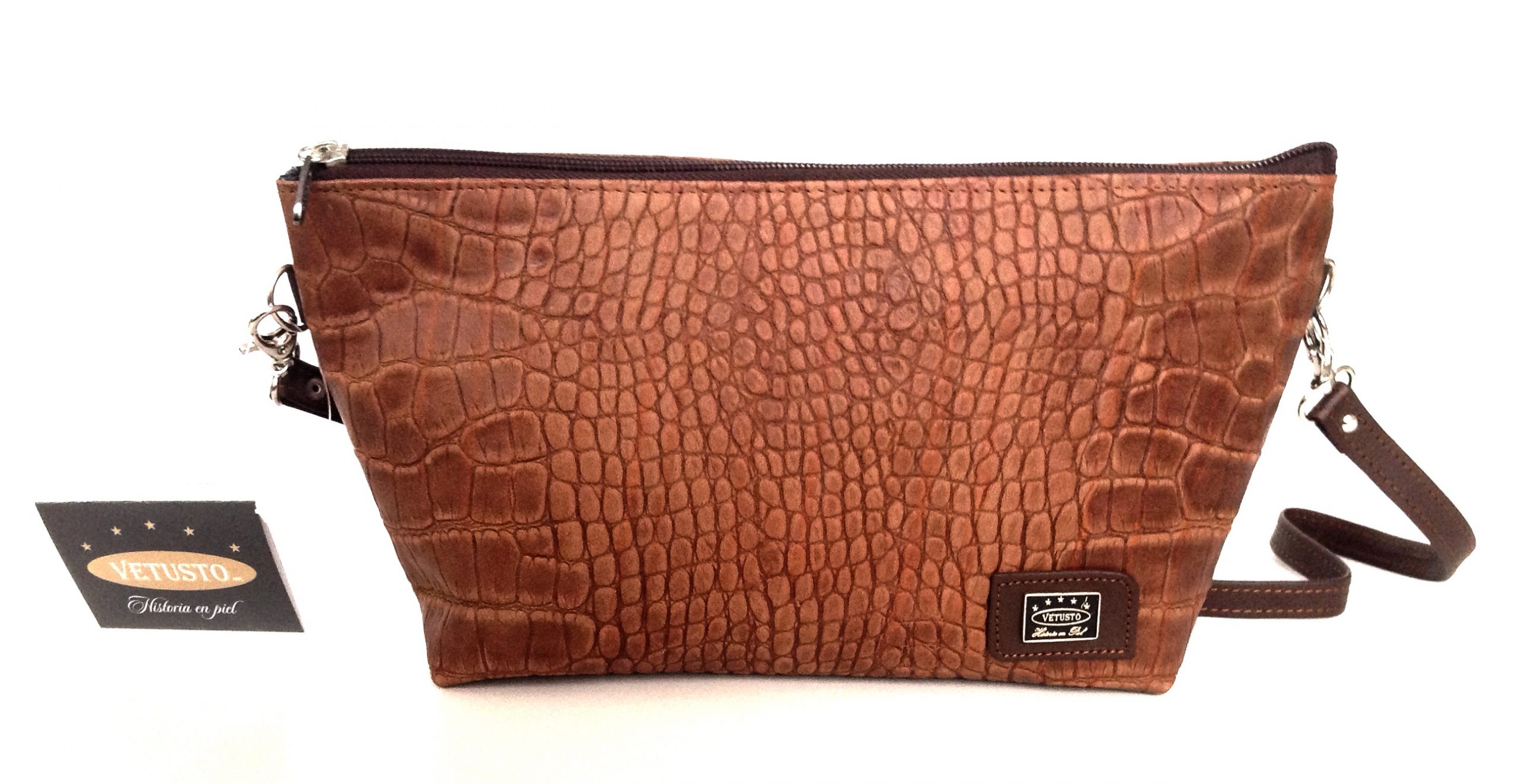 Bolsa de piel con textura grabada, consulta nuestro catalogo.