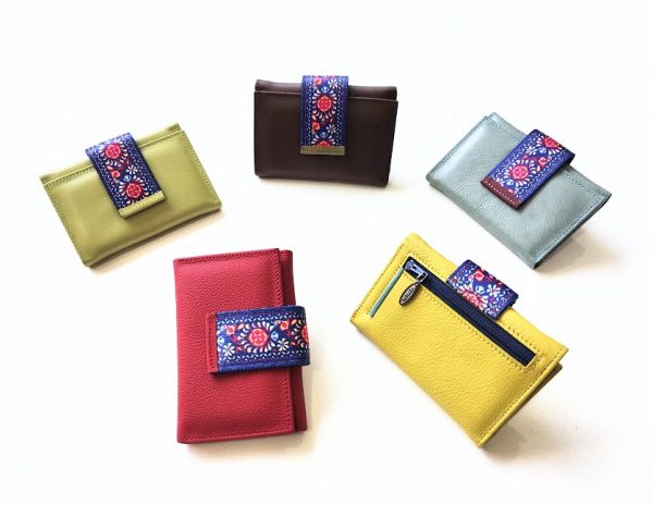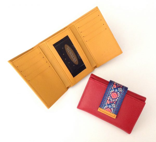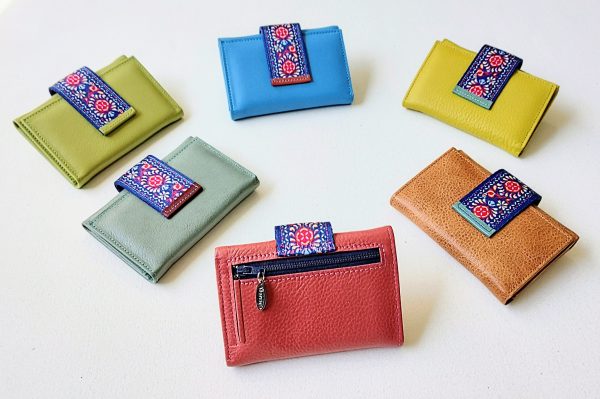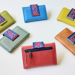Cartera de piel de dama con detalles huichol