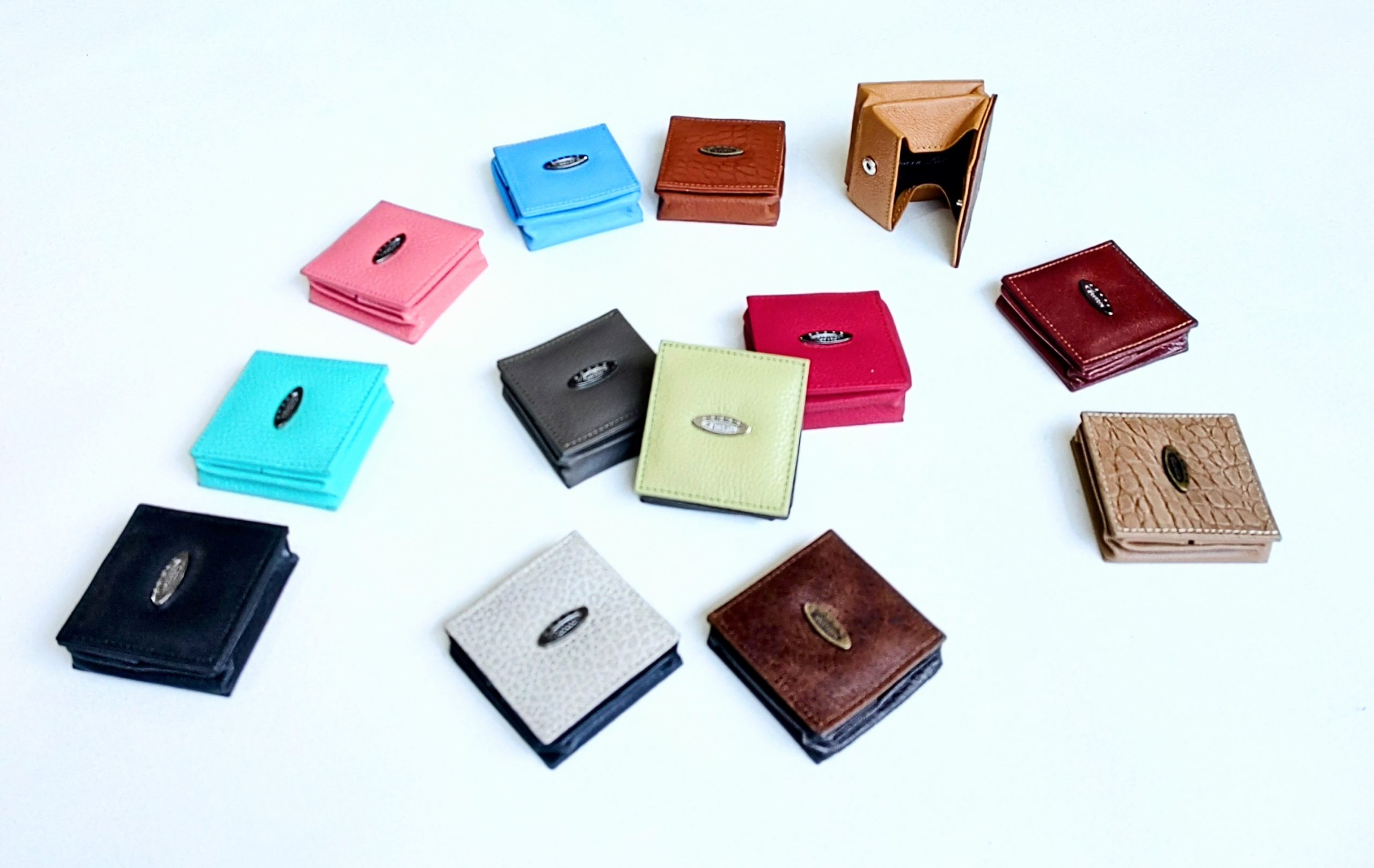 Porta monedas unisex, de piel en varios colores y texturas, consulta el catálogo virtual.